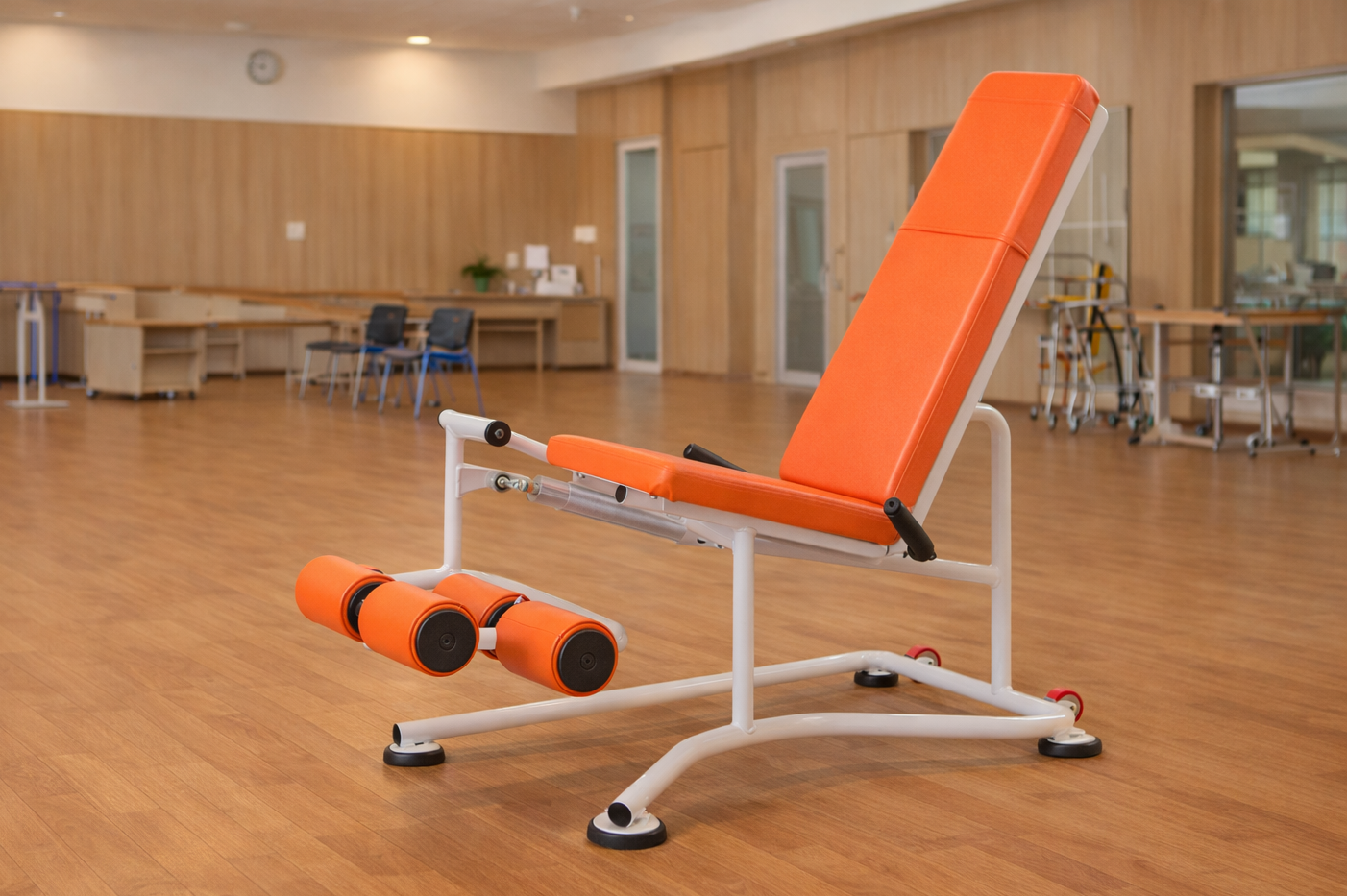 油圧マシンで生活動作能力を支える基礎的体力の低下を抑え、総合的な機能を維持し、また、広いフロアを使い歩行能力の向上を目指します。