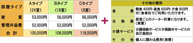 ※管理共益費には、安否確認・緊急時対応、日常生活の相談や状況把握、介護に関する相談及び 連絡調整、医療サービスとの連絡調整、洗濯機・乾燥機の使用、浴室の使用、施設でのイベント費用、 水道代・ガス代及び共有部分の電気代、共有部分の清掃・修繕・保守、専有部分に係る鍵の管理・保管、来訪者の受付・対応等が含まれています。