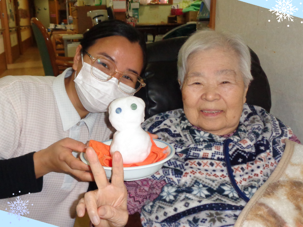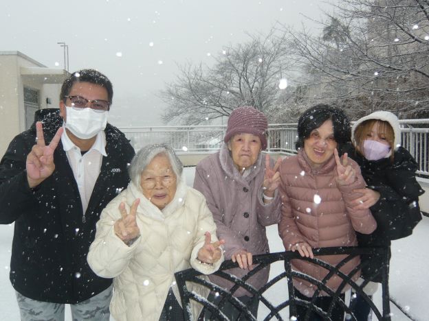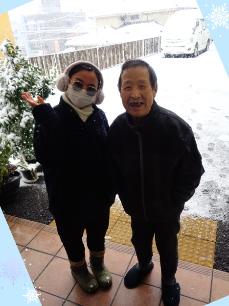 みるみるうちに雪が積もり一面の銀世界が広がって 利用者様からは「すごいね!」「きれいだね~!」と驚きと喜びの声が上がりました