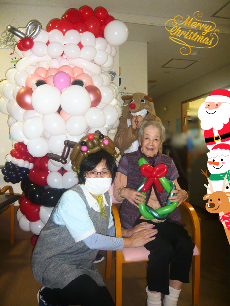 クラシオンカフェとグループホームにはバルーンサンタさんが来訪