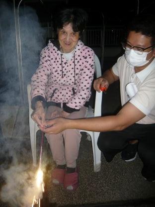 ご利用者の皆さまは手持ち花火を手に取って